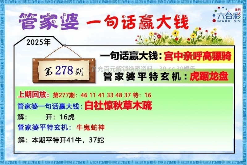 278期:平特一尾⚙【44444】⚙开:虎04准 | |||