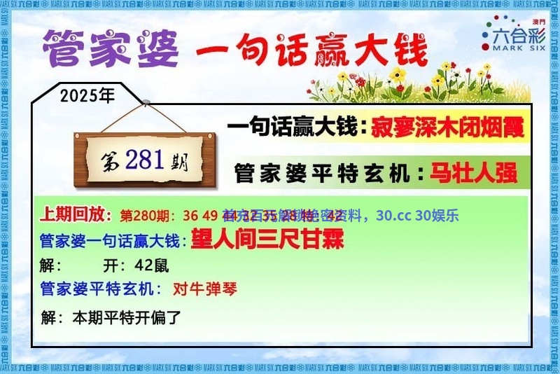 280期:平特一尾⚙【99999】⚙开:蛇49准 | |||